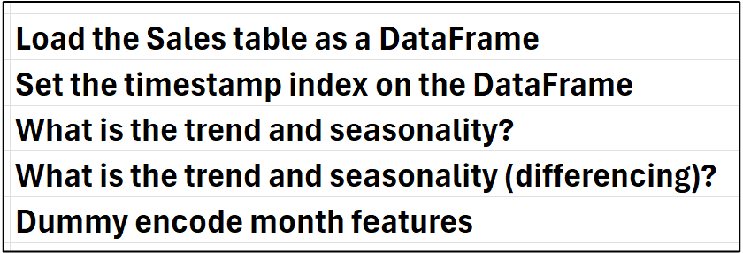 In the case of the Sales dataset, that means adding information about the months to the dataset (i.e., adding features to the dataset as discussed in Part 1).