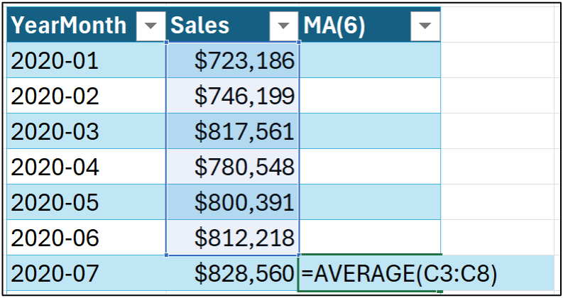 As covered in the last tutorial of the series, I'm going to use a 6-month moving average model to provide the baseline forecasts for the rest of this tutorial series.