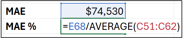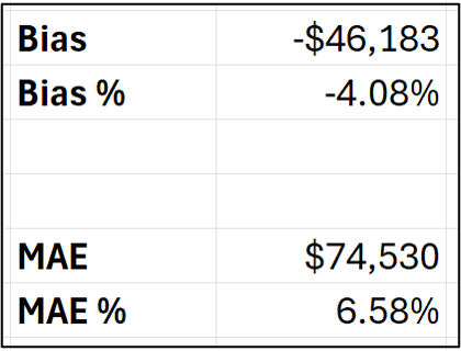 I cover the bias and mean absolute error (MAE) KPIs in Part 3 of the tutorial series, so check out the tutorial if you're not familiar with these calculations.