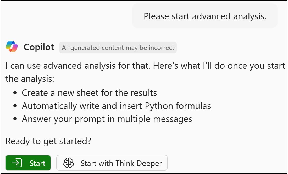 Enter the following prompt to start Copilot's Advanced Analysis mode: