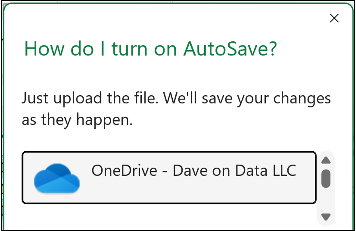 With AutoSave turned on, Excel will ask you where you want to save the workbook in Microsoft's cloud: