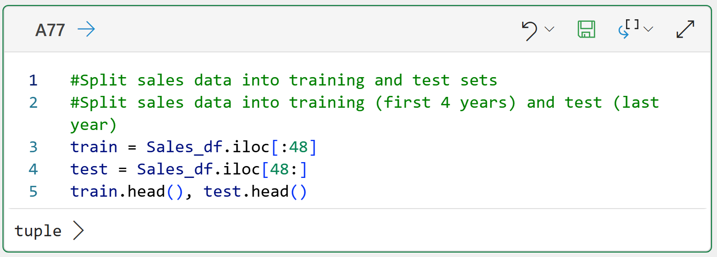 With the data split, it's time to partner with Copilot in Excel to build some forecasting models.