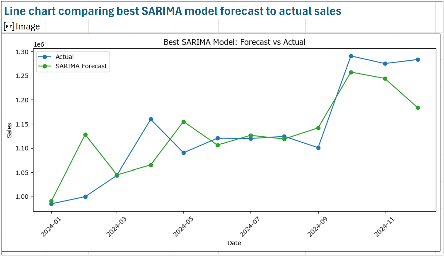 Looking at a line chart of the best SARIMA model will be informative. Here's the prompt: