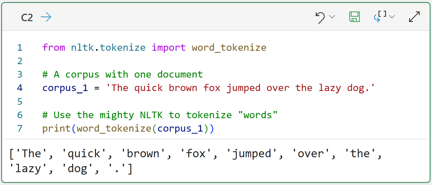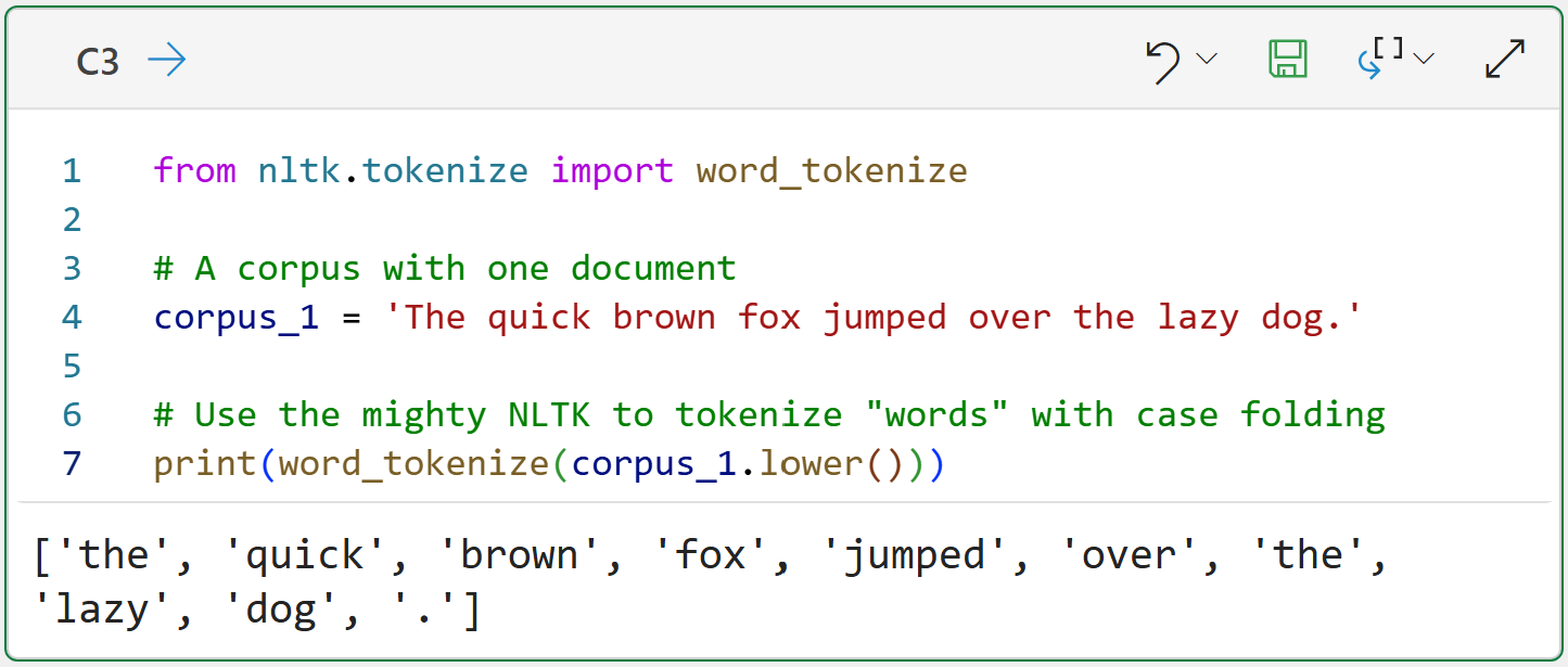 Looking at the output for cell C3 shows how the tokens have been normalized, so the token the will be added only once to the vocabulary.