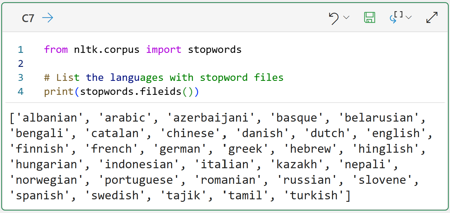 The code above simply shows you which languages have built-in stopword lists provided by the NLTK. There is nothing stopping you from using these lists, altering the lists, or creating your own lists.