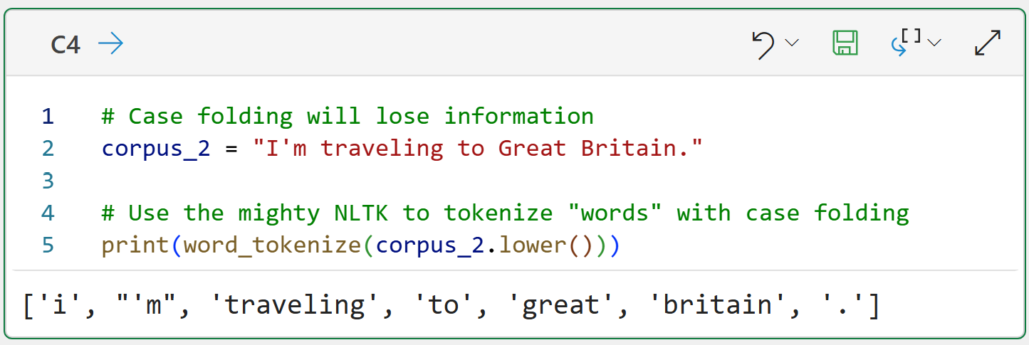 However, the benefits of case folding typically outweigh the loss of this information, so case folding is a standard step in a text preprocessing pipeline.