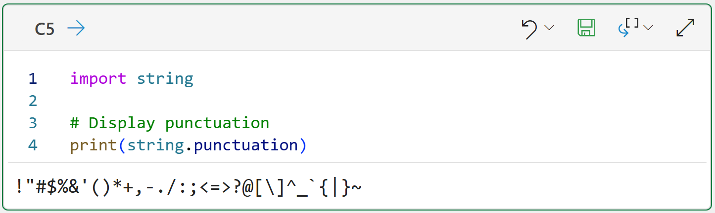 Luckily, Python provides a list of common characters we can use to remove punctuation: