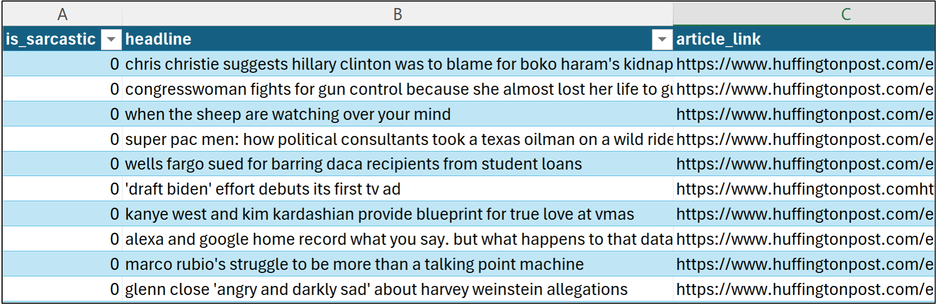 Specifically, I will use data from SarcasticHeadlines.xslx Excel workbook available from the newsletter's GitHub repository. As always, it is highly recommended that you follow along and write all the code.