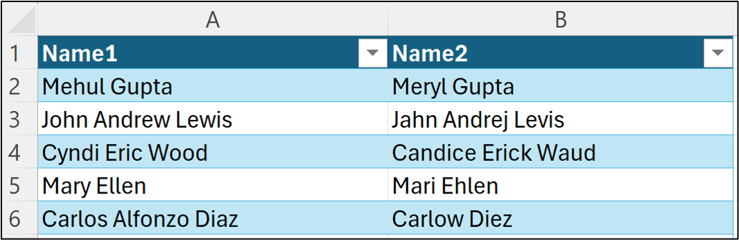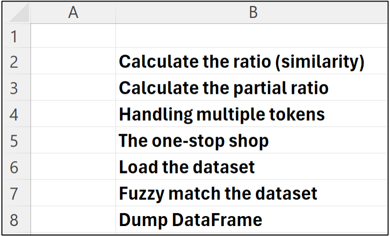 I encourage you to grab the NameMatching.xslx workbook from the newsletter’s GitHub repository and follow along. Because you learn Python by writing Python.