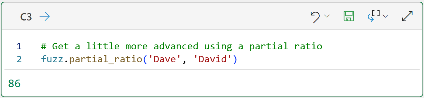 I'm going to use TheFuzz library that is included with Python in Excel for this tutorial. The Fuzz provides battle-tested fuzzy string matching functionality, and the best part is that understanding how it works is quite straightforward.