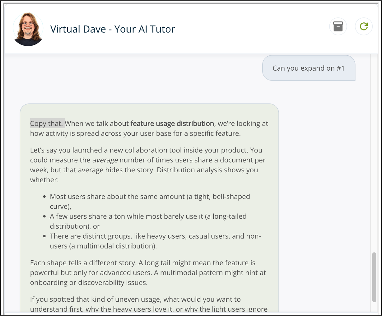 Virtual Dave is an AI service I’m integrating into all my self-paced online courses.